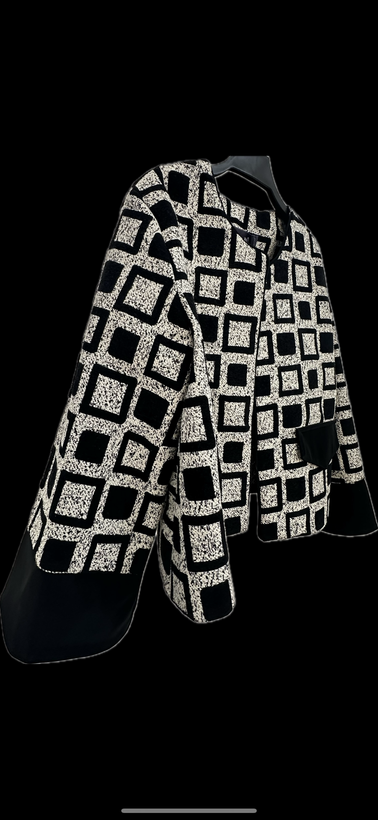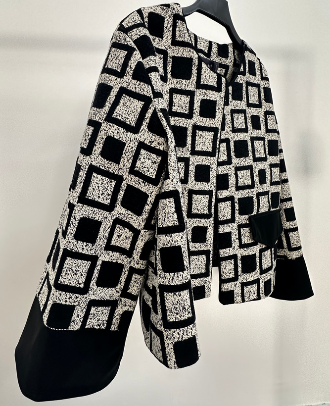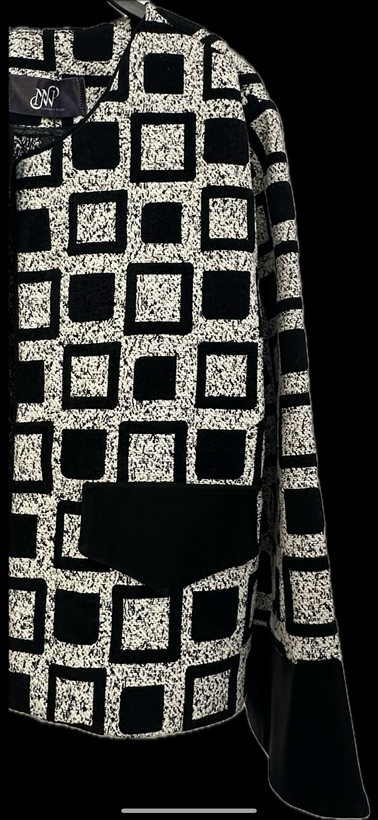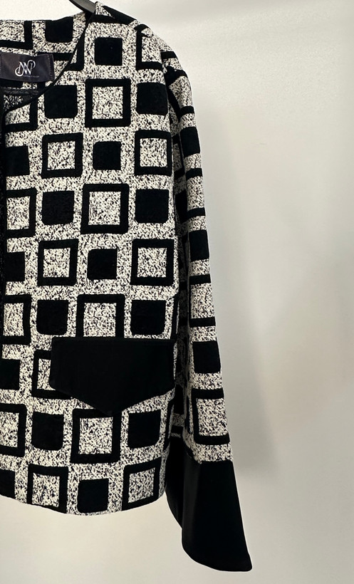 سر جیب طرح میباشد و بهمراه سر آستین از جنس جیر مشکی است.