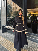 جیب روی کت طرح میباشد.