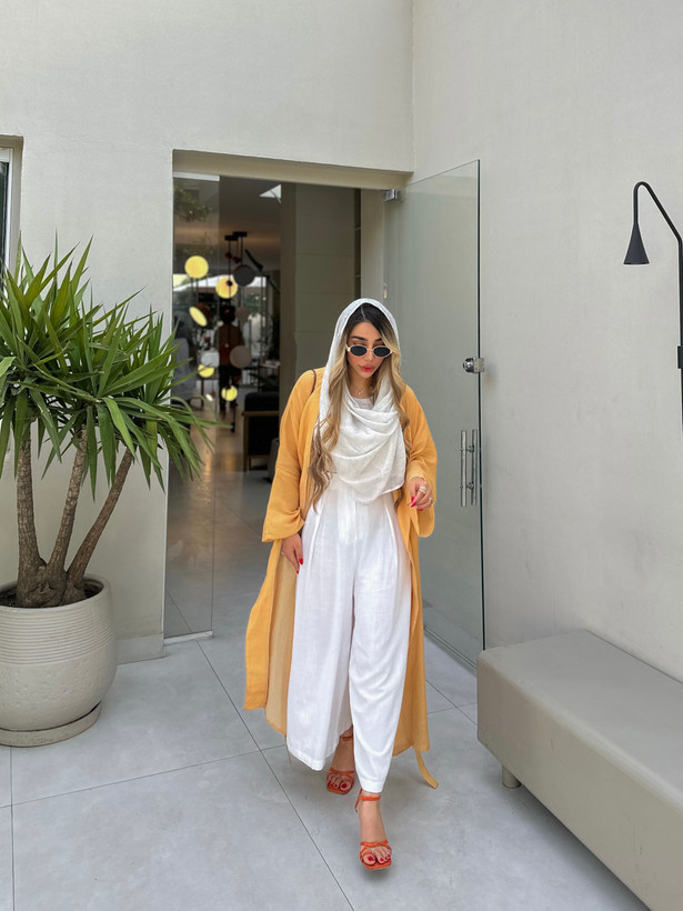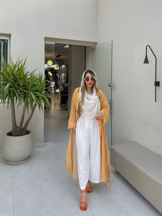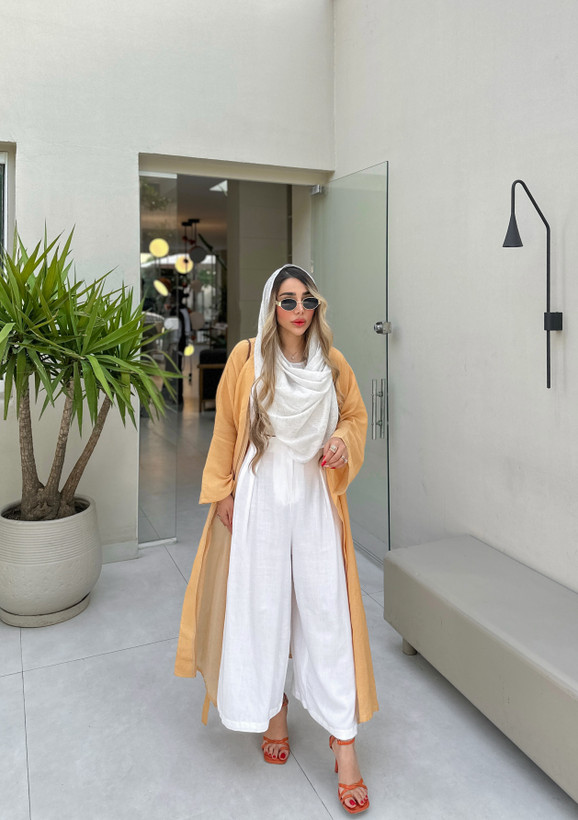 شلوار این ست محصول کد ۰۰۵۷ مجموعه نیلمامد دامن شلواری لینن سفید میباشد.