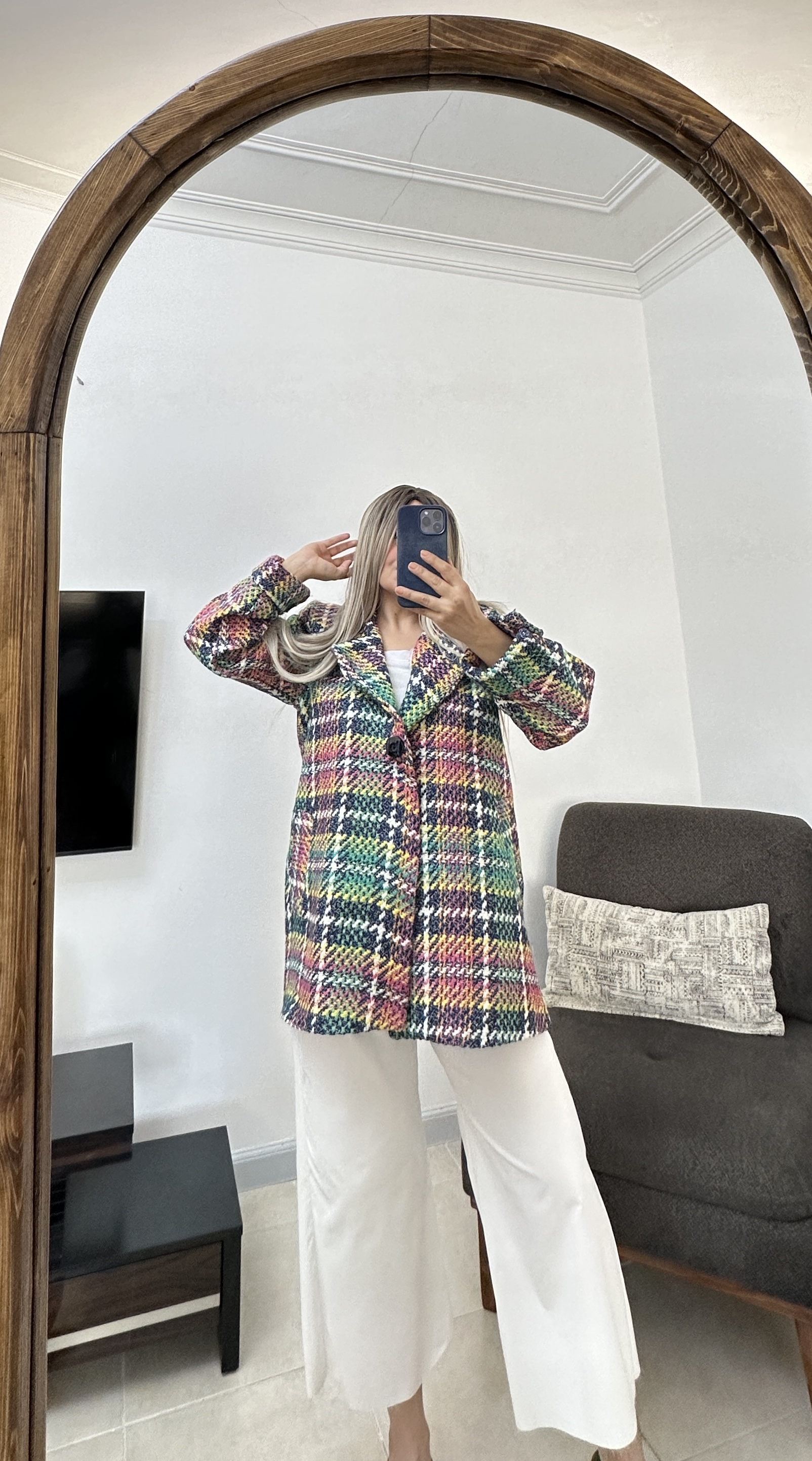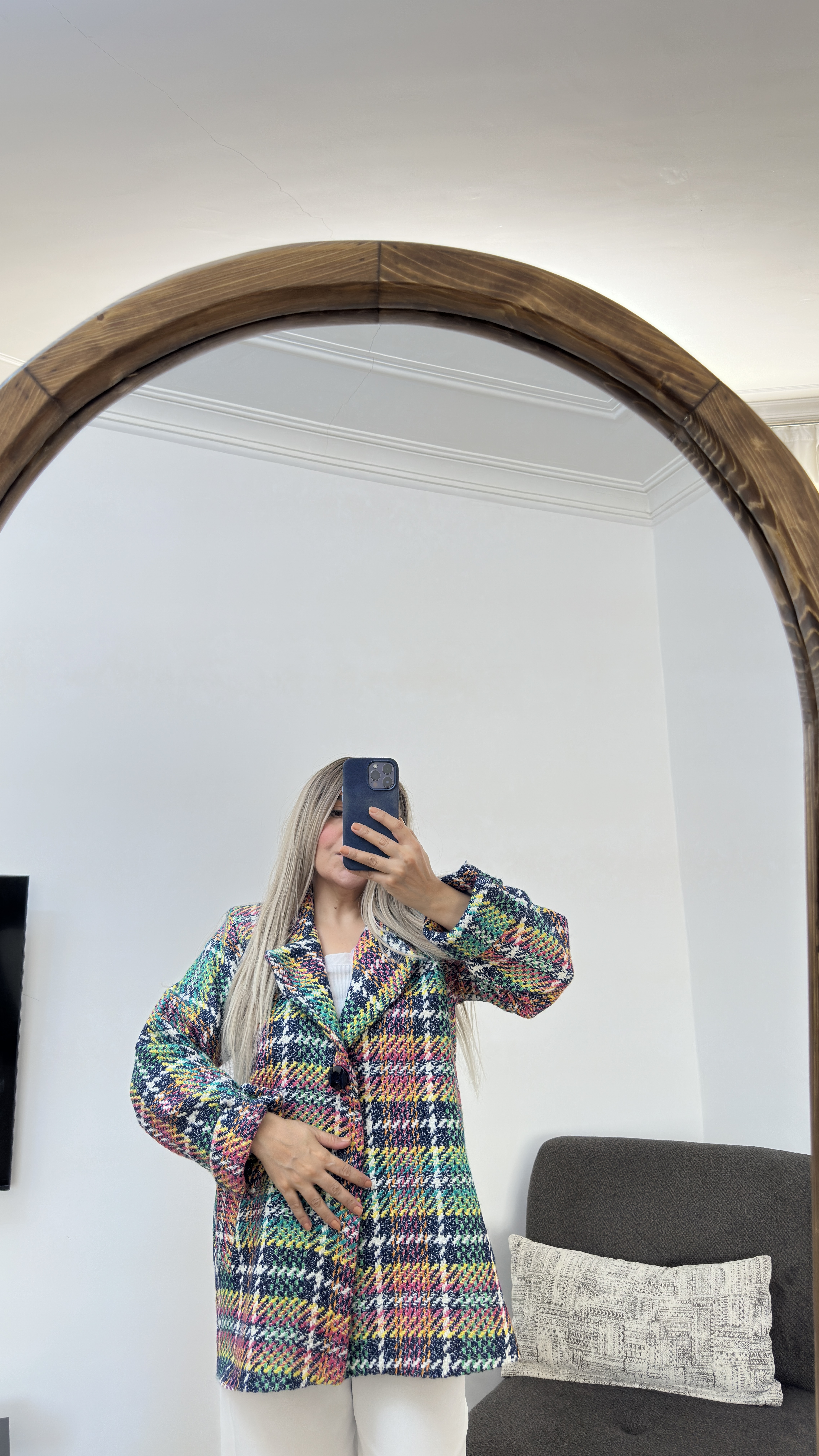 کار مزونی و تولید مجموعه نیلمامد (ارسال سریع) پالتو در دو قد ۱۱۵ و ۷۷ موجود مناسب تا سایز ۴۲ جنس : نوعی بافت متراکم لایی کشی کامل دارای دوجیب کاربردی پشت پالتو چاک دارد