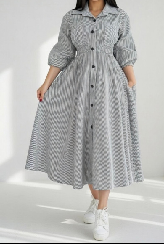 مدل ۱: یقه گرد، یک جیب دارد، آستین دوبل پاکتی