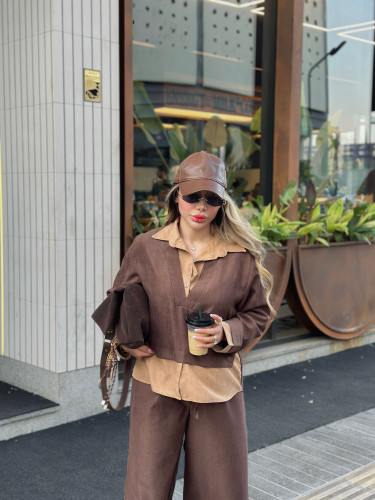کت دو تکه لینن نیلمامد شومیز متصل 0033