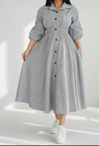 شلوارلینن نیلمامد مدل بگ پیلی دار ۰۰۵۷