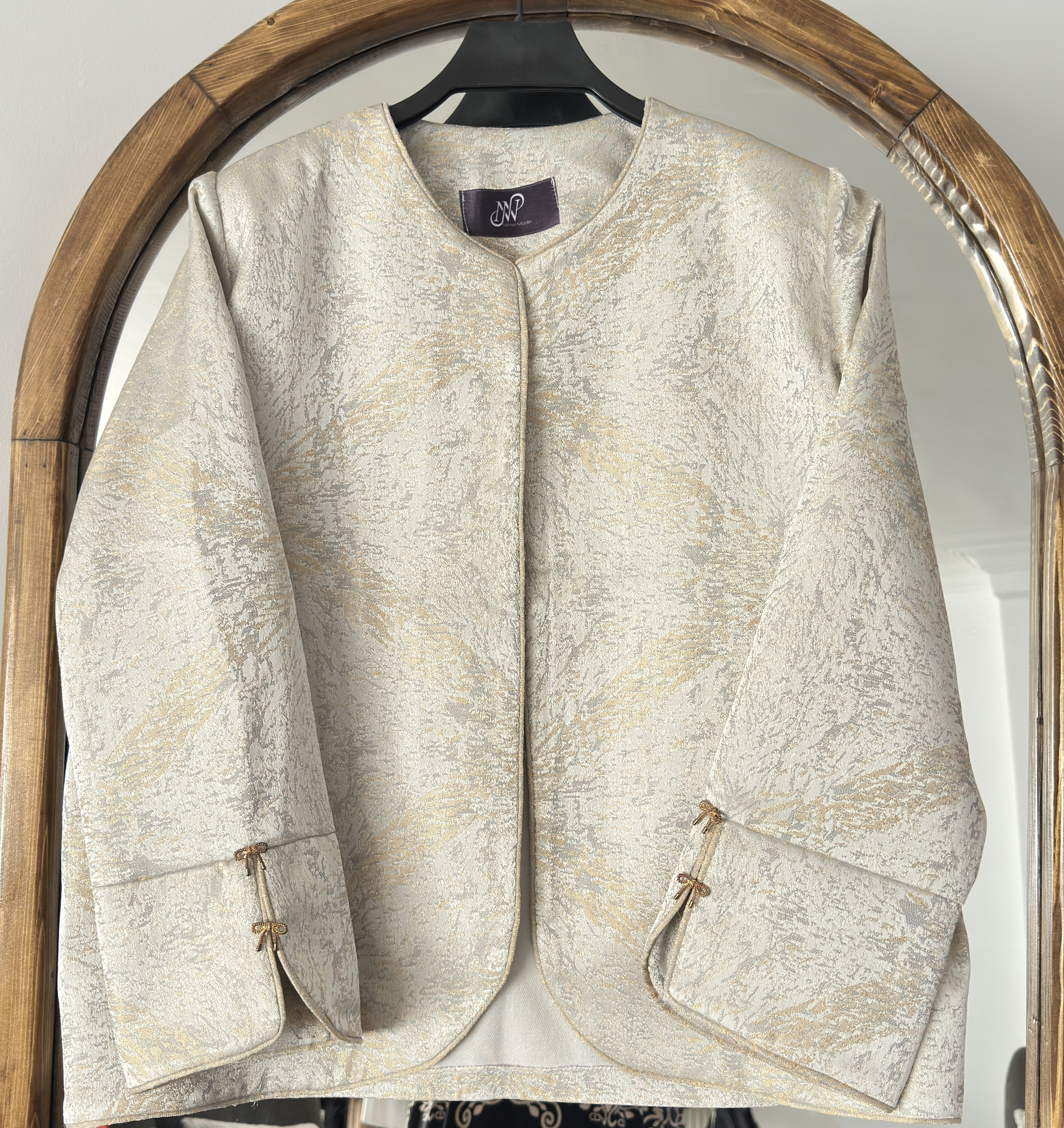 ناموجودمانتو ژاکارد نیلمامد آستین گره ای 0027